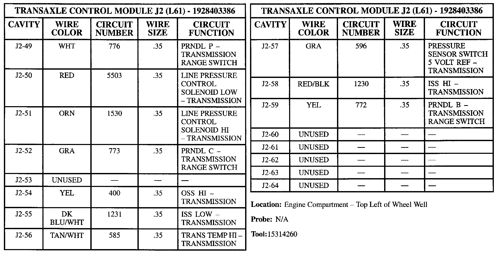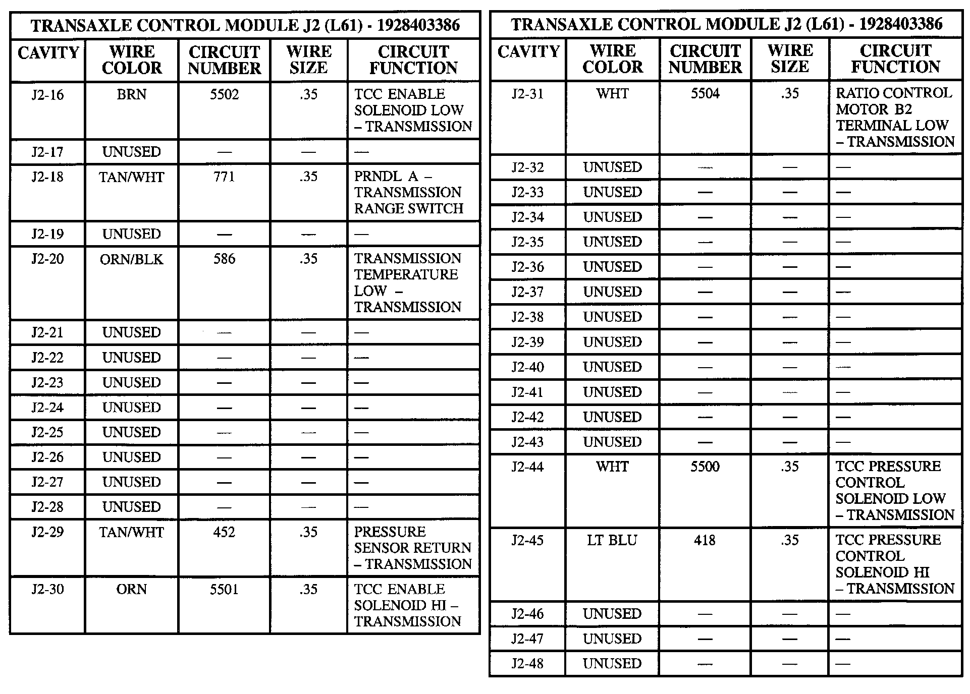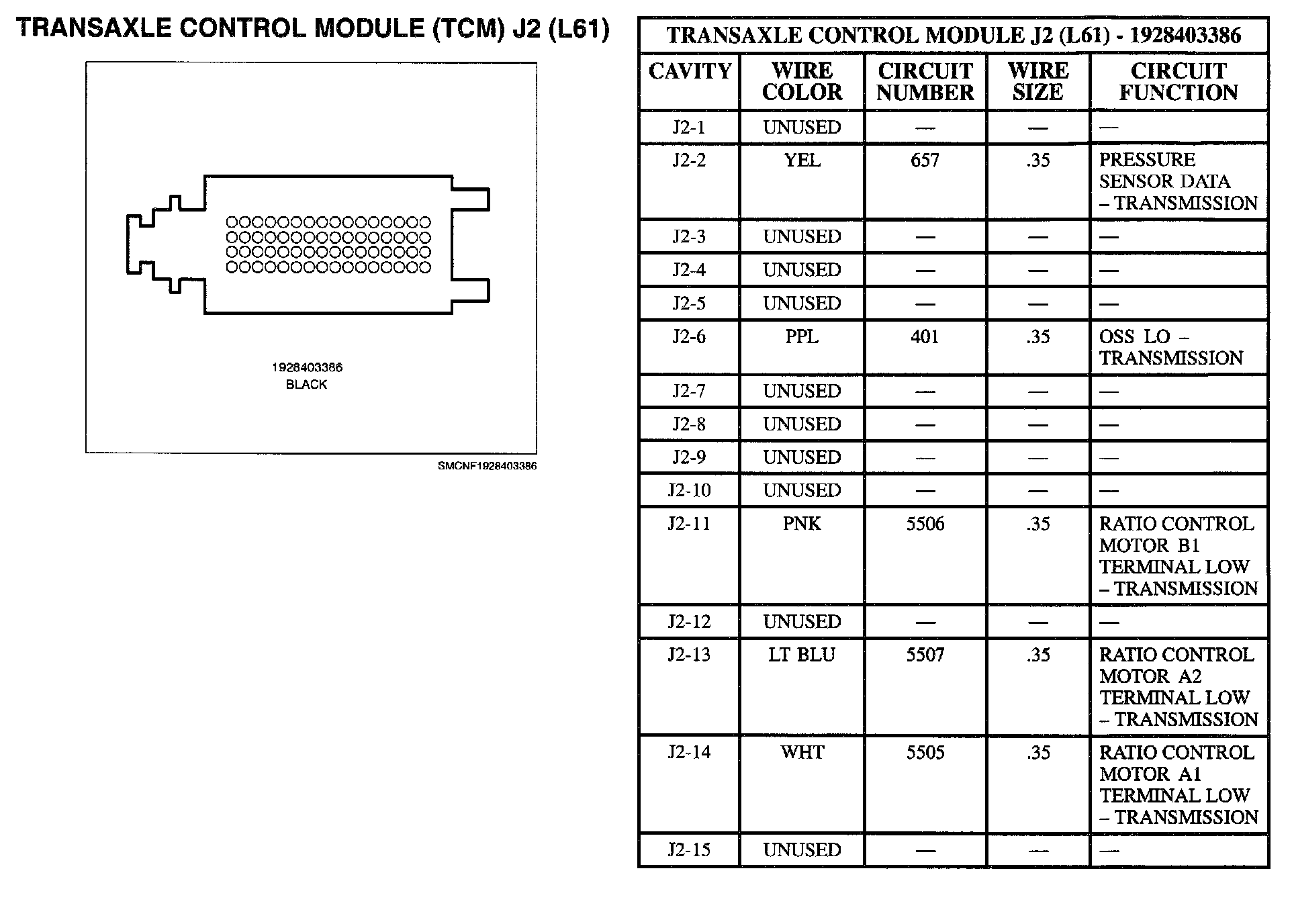 Transaxle Control Module (TCM) J2 (L61) Part 1: