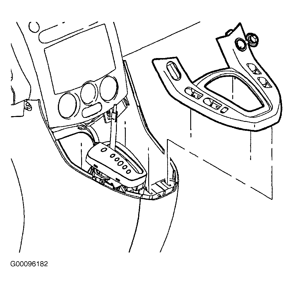 - Move the gearshift lever to the Neutral position. Install front edge of horseshoe bezel ensuring to engage alignment pins and front edge tabs with corresponding slots at bottom of radio bezel. See Fig 1