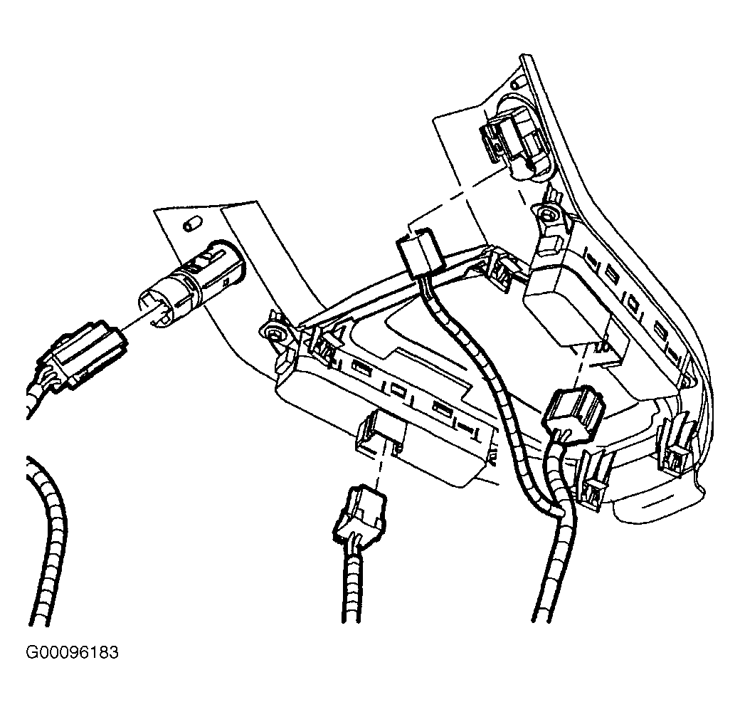 - Install screws and tighten. Connect power outlet electrical connector. Connect wiring harnesses to window switches, mirror switch and cigar lighter. See Fig 2