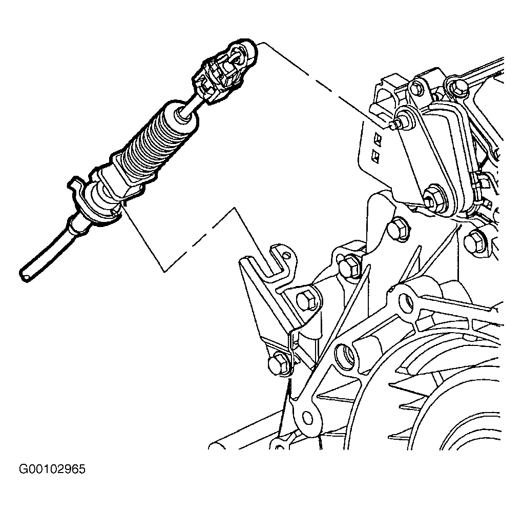 - With transaxle range switch lever located in Neutral position, snap cable end fitting onto ball stud of lever. An audible snap will be heard when properly installed. See Figure