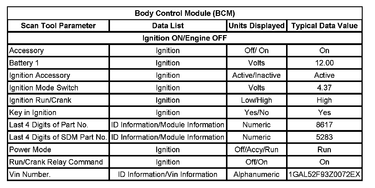 Scan Tool Data List