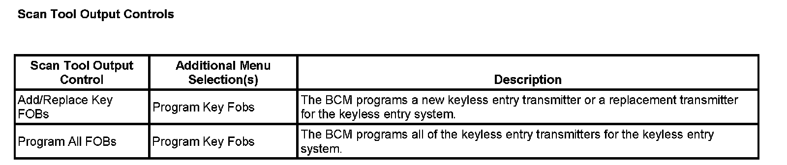 Scan Tool Output Controls