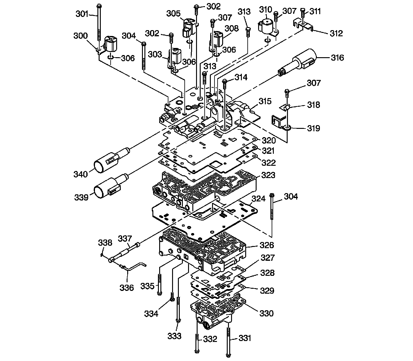 324 - Middle Control Valve Body Assembly to Rear Control Valve Body Spacer Plate and Gasket Assembly