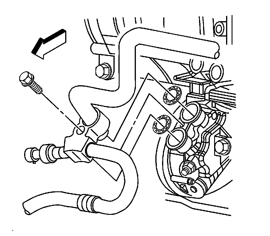 7. Remove the compressor and condenser hose assembly bolt from the compressor.