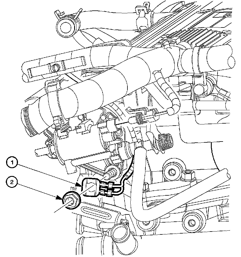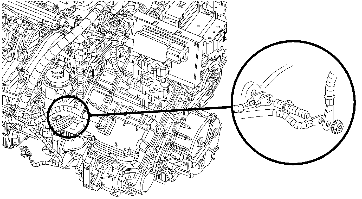Vehicles built prior to VIN 3Z118970 utilize the lower stud on the intake cam end cover plate. Refer to the Service Procedure in this bulletin for instructions to relocate the ground to the rear cam cover. While it is not necessary to relocate this ground terminal, it is suggested that whenever the intake cam cover stud is being serviced, the ring terminal ground connection be moved to the updated location.