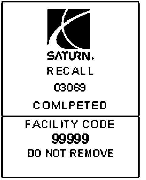 As a reminder, additional labels may be ordered from Saturn publications (1-800-828-2112, prompt 3, Item Number S03 00013A for the Recall Identification Label, and item number S03 00013B for the clear Protective Cover).