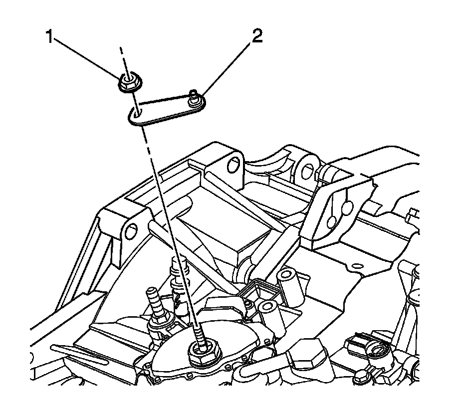 8. Install the transmission control lever (2) and nut (1).