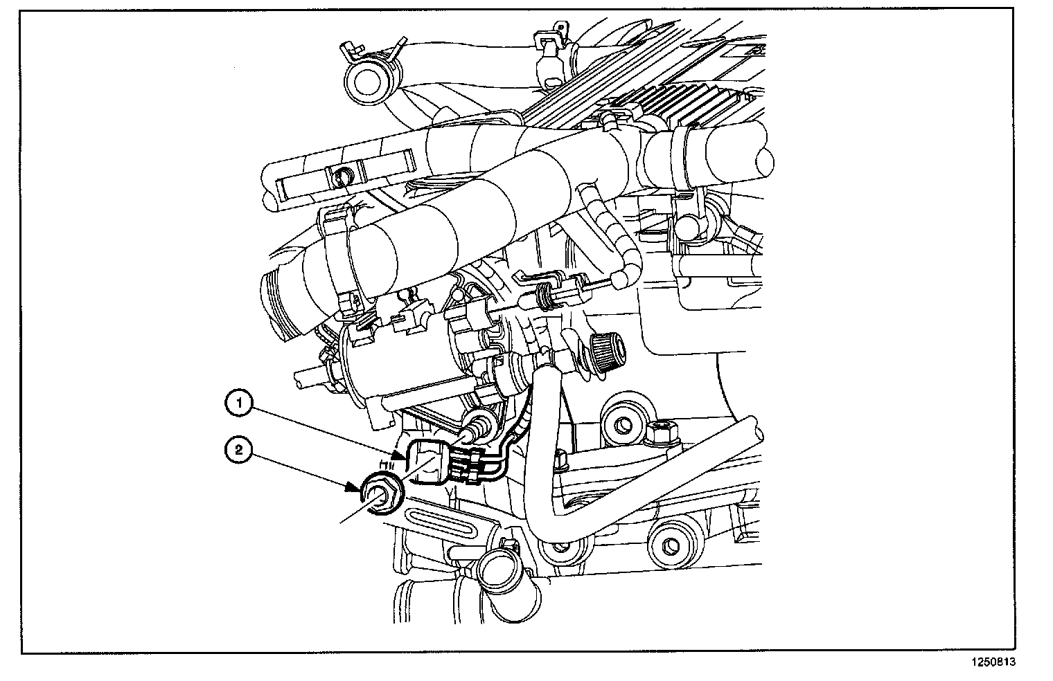 Vehicles built prior to VIN 3Z118970 utilize the lower stud on the intake cam end cover plate. Refer to the Service Procedure in this bulletin for instructions to relocate the ground to the rear cam cover. While it is not necessary to relocate this ground terminal, it is suggested that whenever the intake cam cover stud is being serviced, the ring terminal ground connection be moved to the updated location.