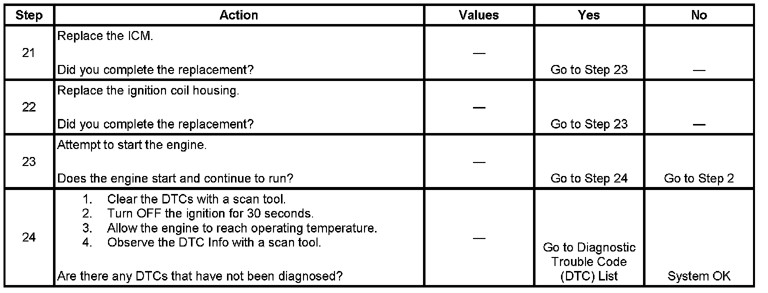Each ignition coil supplies secondary voltage to a pair of spark plugs. This is called a waste spark ignition system. The engine control module (ECM) supplies ignition control (IC) signals to the ignition control module (ICM). The ICM fires the correct ignition coil at the correct time based on the IC signals. The ICM detects if cylinder 1 or cylinder 3 is on the compression stroke by sensing the secondary voltage and polarity of each side of the ignition coil. The higher voltage is on the compressing cylinder. The ICM provides a synthesized cam signal to the ECM based on these inputs. This is called compression sense ignition. The ECM uses the cam signals to synchronize fuel injection. This system consists of the following circuits:
