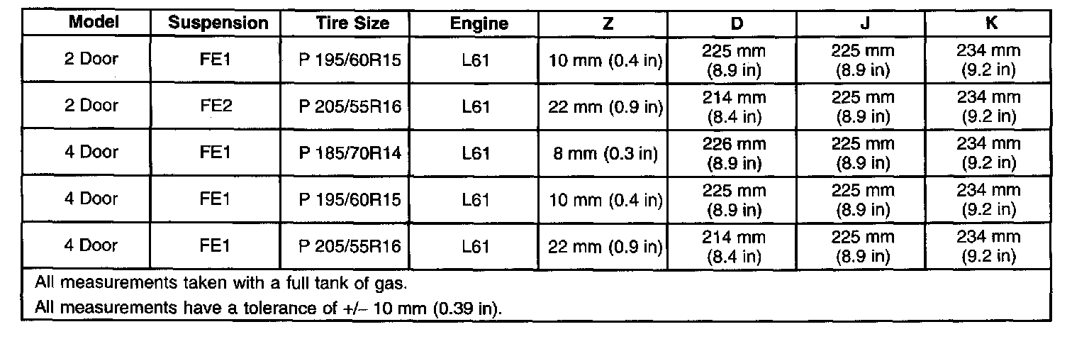 Trim Height Specifications: