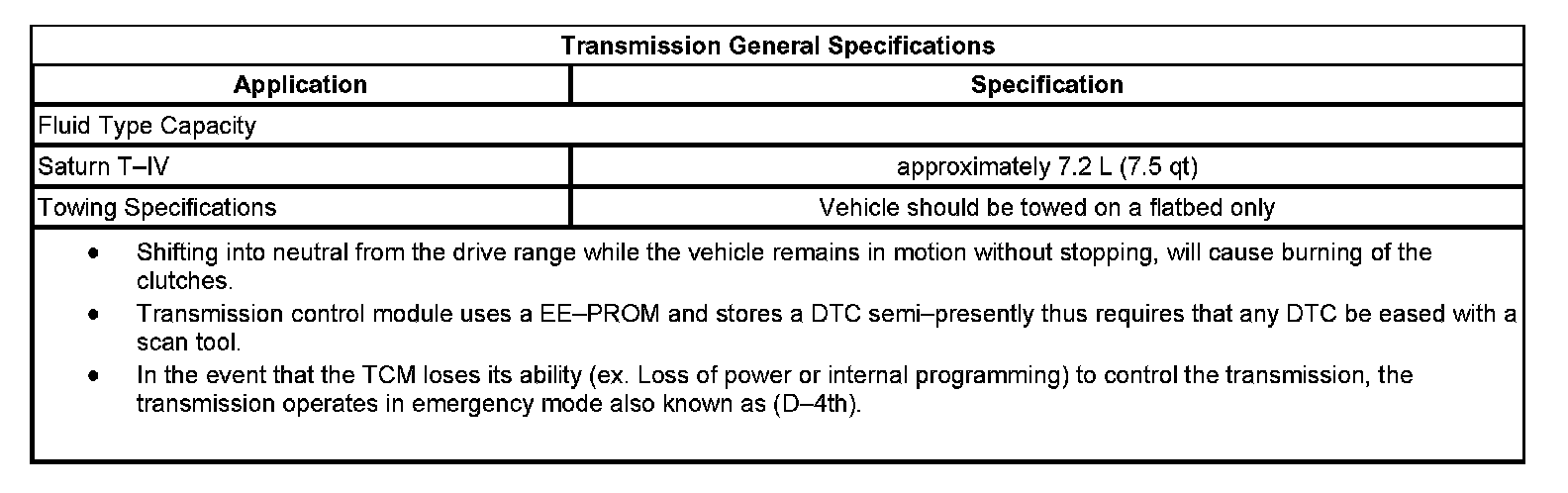 Transmission General Specifications