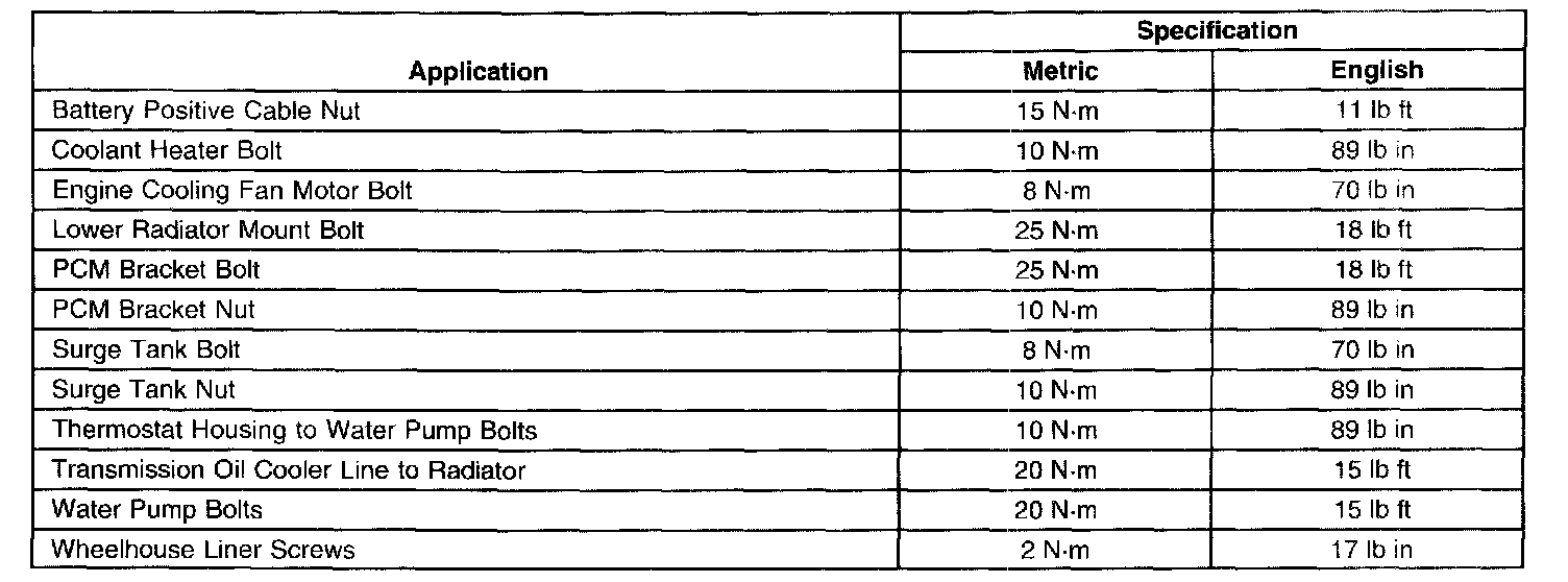 Fastener Tightening Specifications: