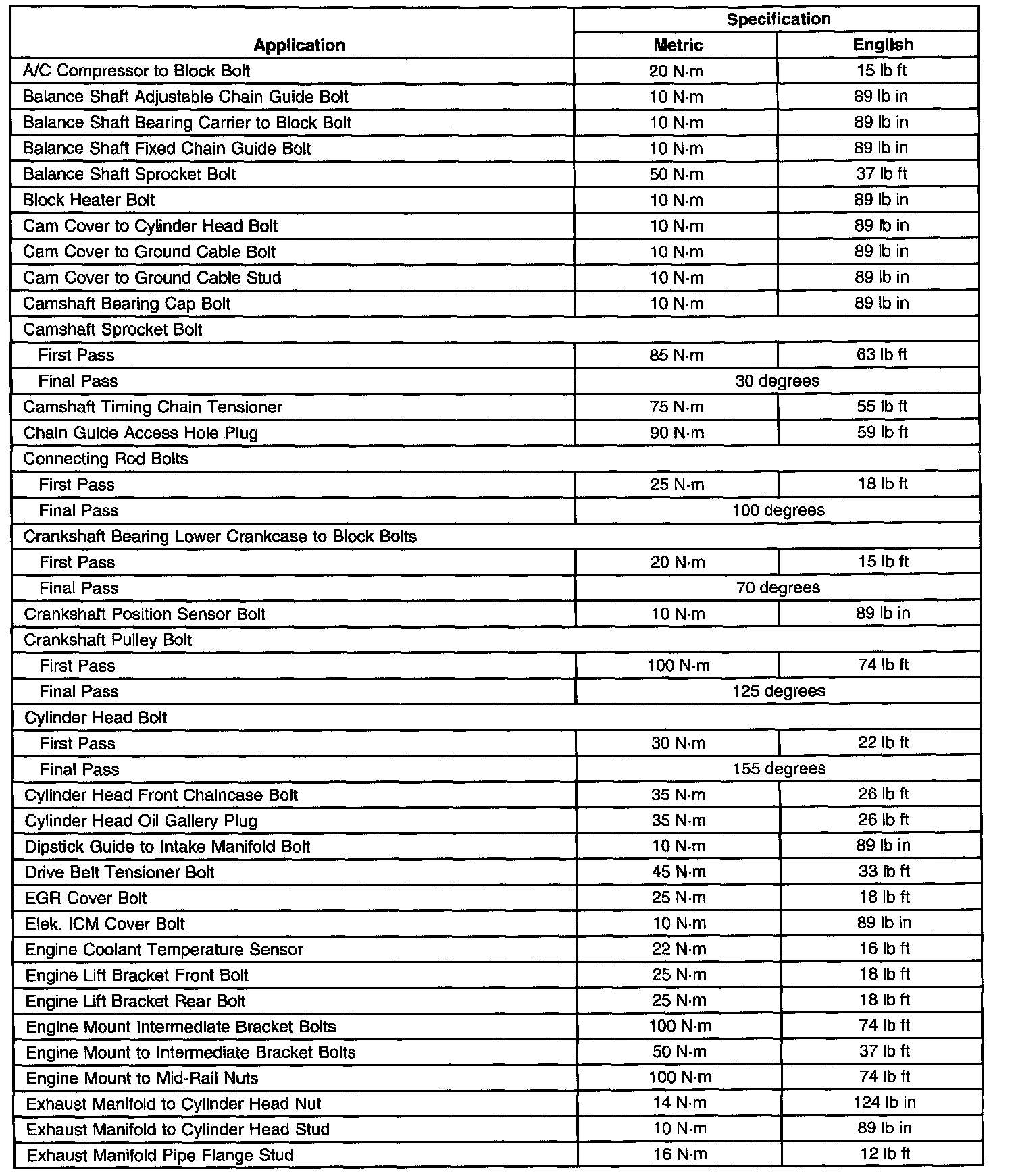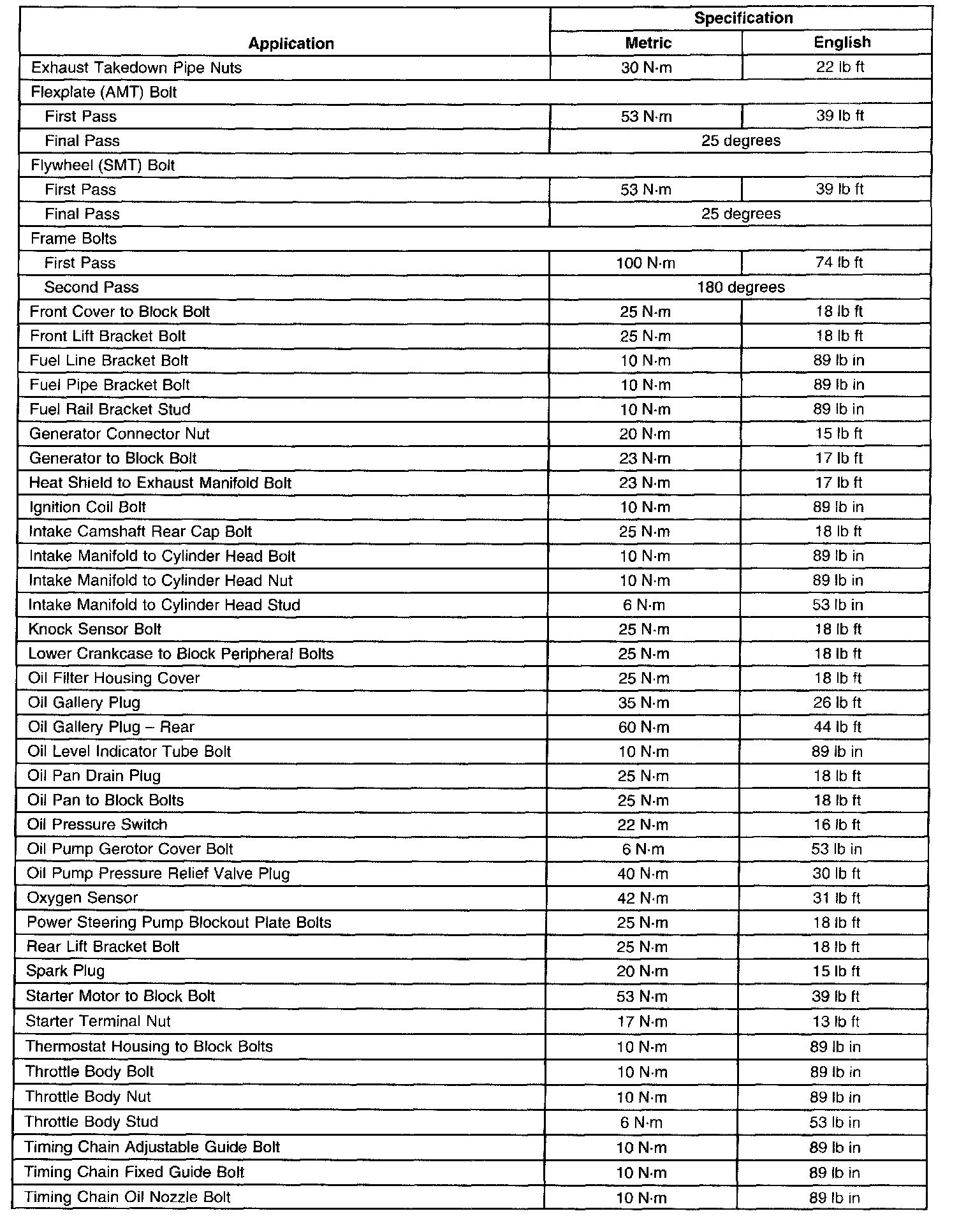 Fastener Tightening Specifications
