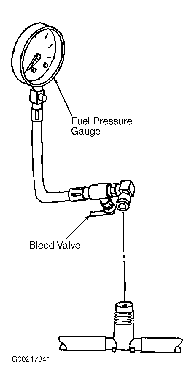 - Place the bleed hose of the gauge bar set or fuel pressure gauge into an approved fuel container.