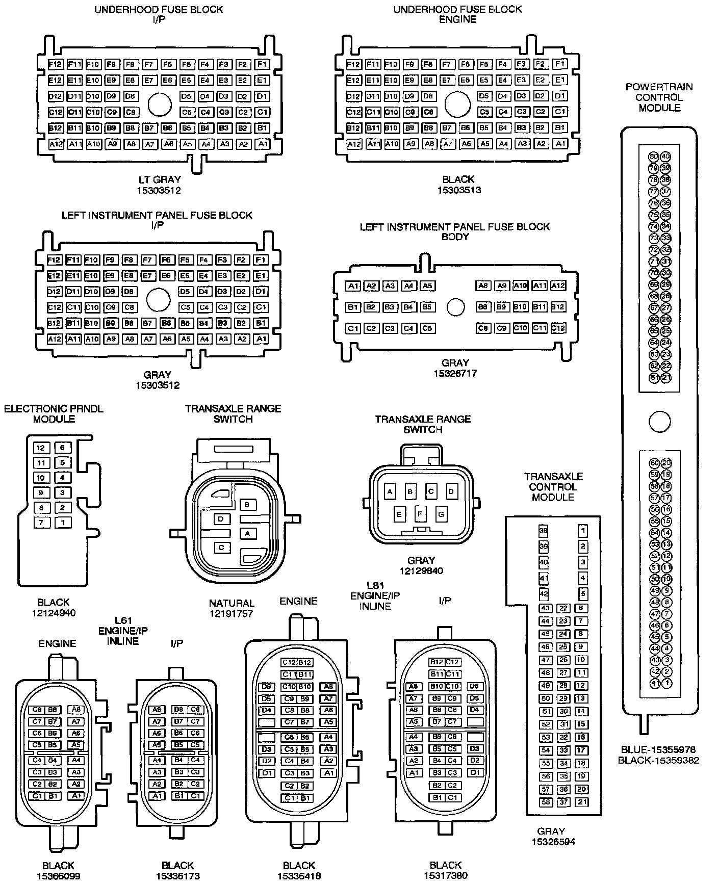 SHIFT CONTROL CONNECTOR FACE VIEWS