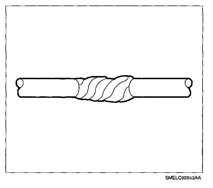 2. Unwrap the tape. Do not remove the tape. Use the tape in order to rewrap the twisted conductors after the splice is made.