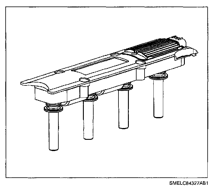 The EI module, ignition coil housing with coil packs and spark plug boots are bolted as an assembly to the top of the cam cover. The Electronic Ignition (EI) module charges and discharges the coils based on PCM control. The PCM uses a high control signal of near 5 volts to charge up the coil and a low control signal of near 0 volts to discharge the coil. If the coil is charged and the control signal is low, the coil will fire through its secondary towers. The PCM controls spark timing and dwell (spark On-time) under all engine running conditions.