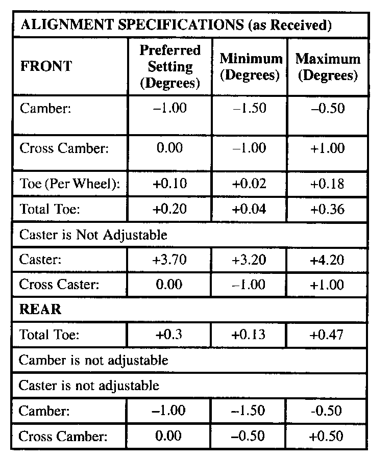 Home >> Saturn >> 2003 >> L200 L4-2.2L VIN F >> Repair and Diagnosis >> Specifications >> Mechanical Specifications >> Alignment