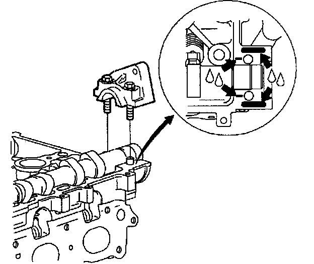 - Apply a 5 mm (13/64 inch) bead of Loctite Anaerobic Gasket Maker 518- to rear intake camshaft bearing cap.