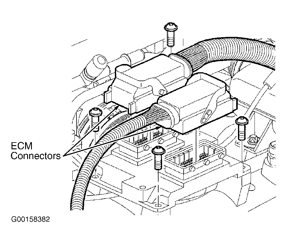 Turn OFF the ignition for at least 10 seconds. Disconnect ECM J1 and J2 harness connectors. See Figure . Remove ECM attachment bolts and remove ECM.