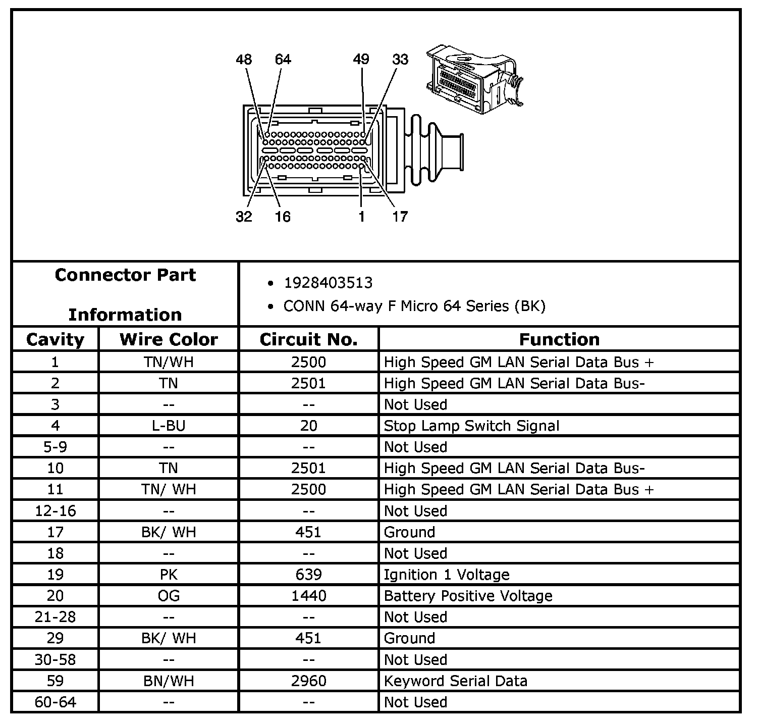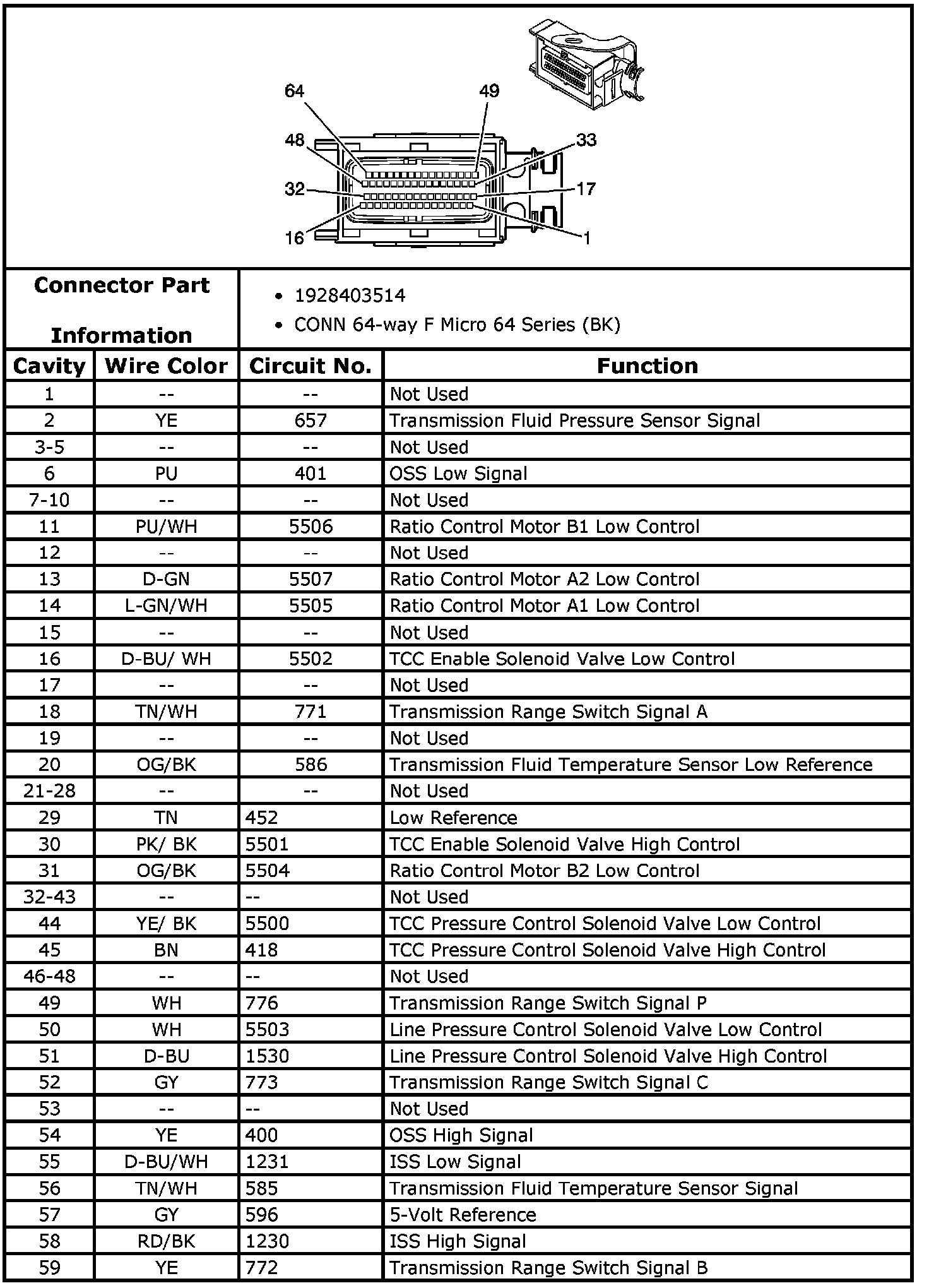 Transmission Control Module Harness 64-Way Connector