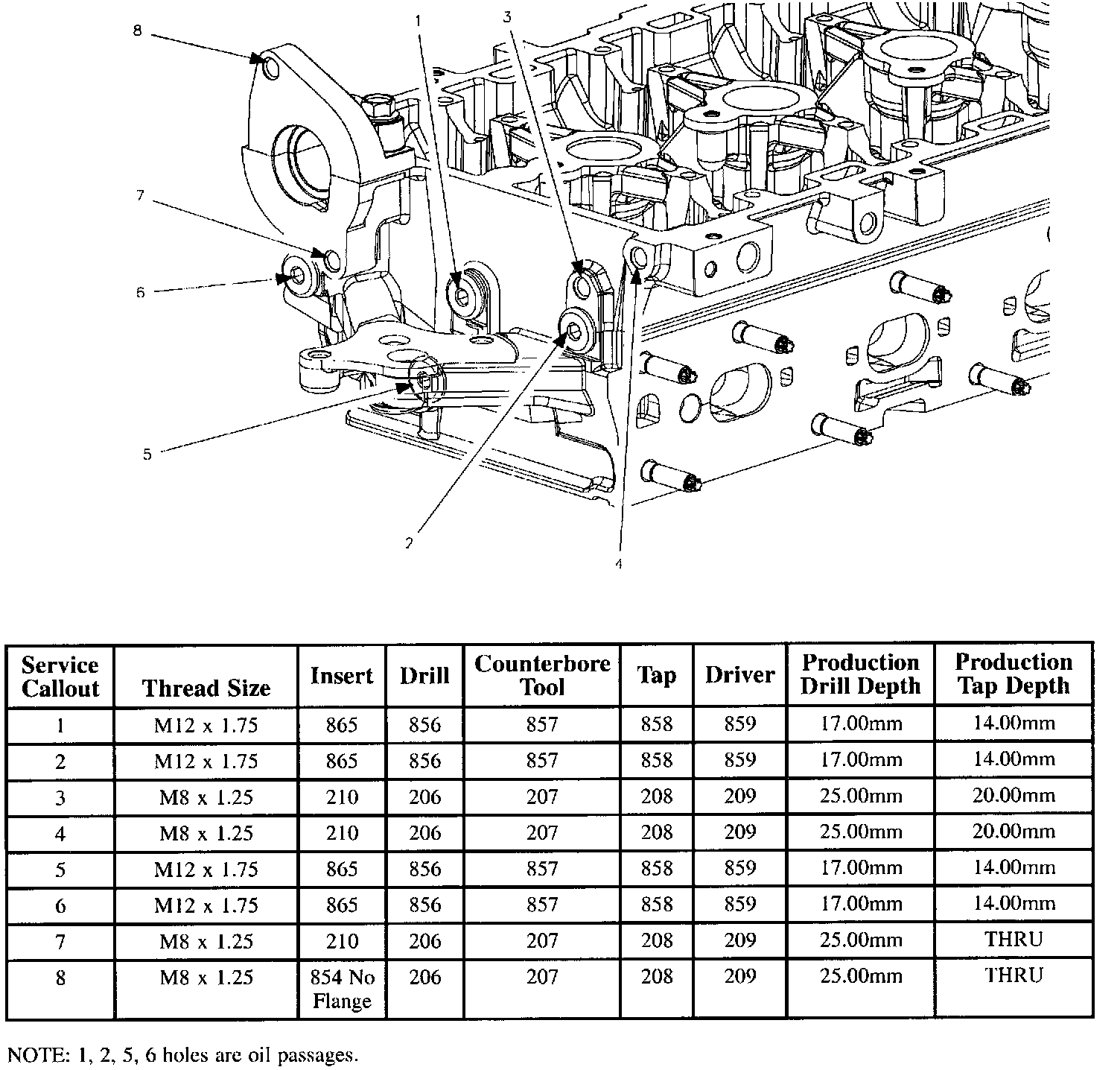 NOTE: 1, 2, 5, 6 holes are oil passages.