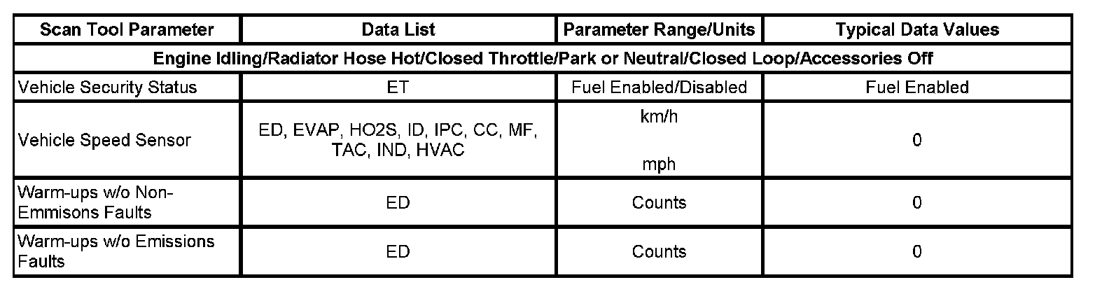 Only the parameters listed below are referenced in this Service Data for use in diagnosis. If all values are within the typical range described below, refer to Symptoms - Computers and Control Systems for diagnosis. Symptom Related Diagnostic Procedures