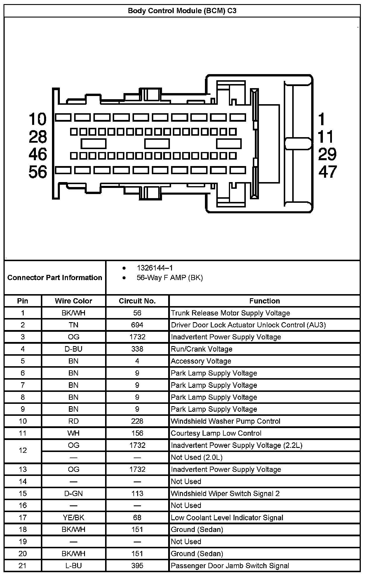 Home >> Saturn >> 2004 >> ION L4-2.2L VIN F >> Repair and Diagnosis >> Body and Frame >> Body Control Systems >> Body Control Module >> Diagrams >> Body Control Module (BCM) C3