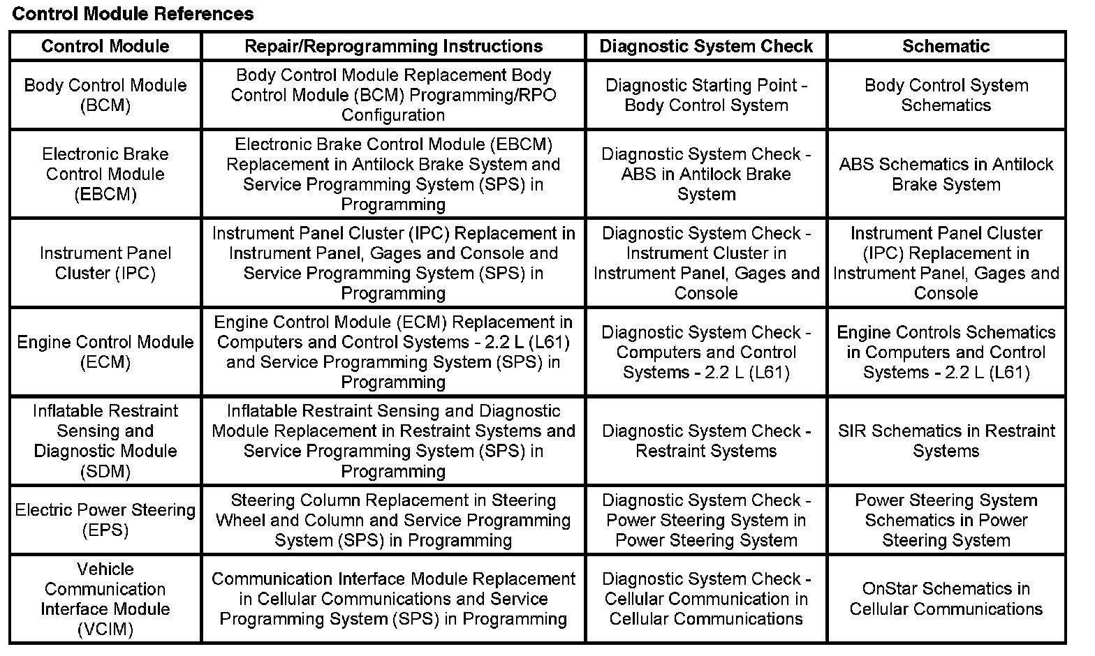 Control Module References