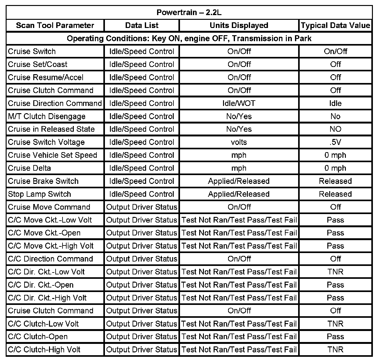 Scan Tool Data List