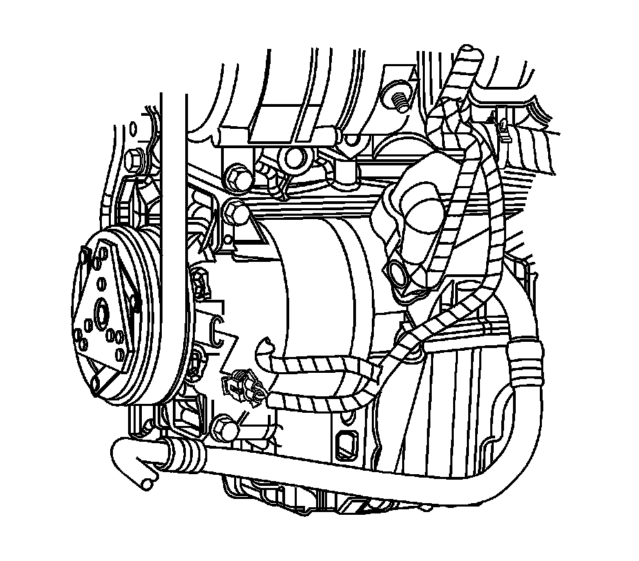7. Remove the compressor and condenser hose assembly bolt from the compressor.
