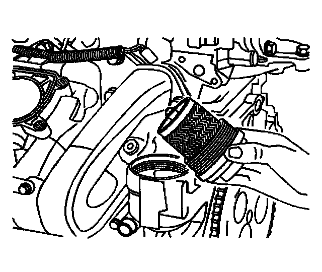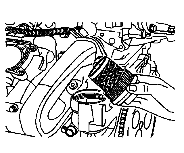 Notice: Over torquing the oil filter cap may cause damage to the oil filter cap resulting in an oil leak.