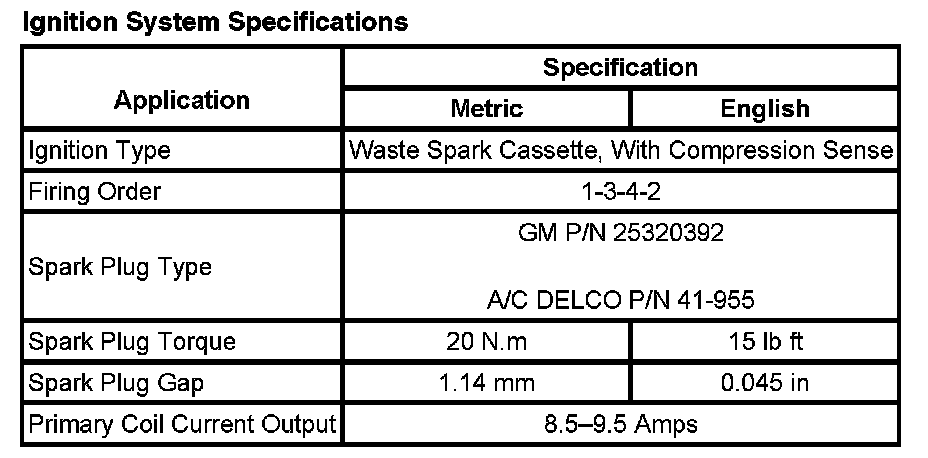 Ignition System: Specifications