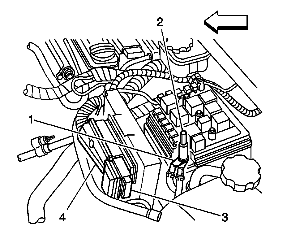 4. Disconnect the large ECM harness connector (4) from the ECM.