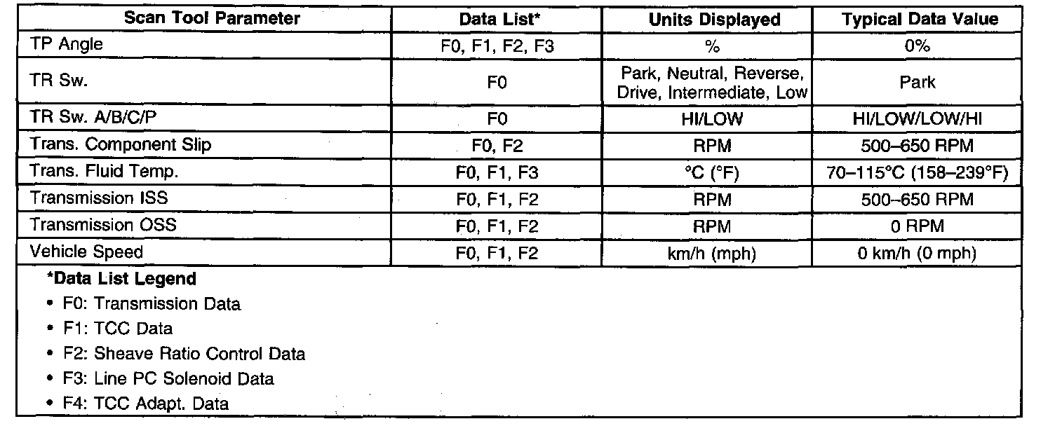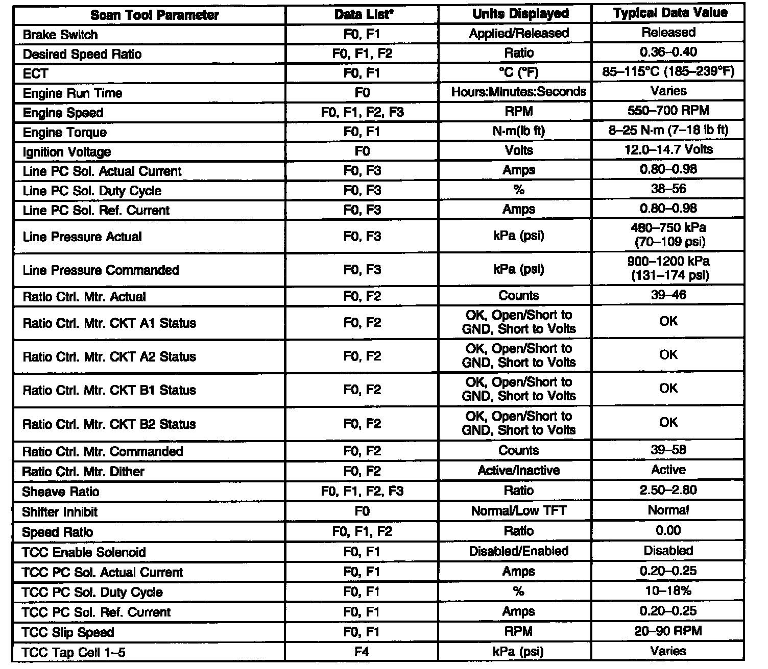 Home >> Saturn >> 2004 >> ION L4-2.2L VIN F >> Repair and Diagnosis >> Powertrain Management >> Transmission Control Systems >> Testing and Inspection >> Scan Tool Data List