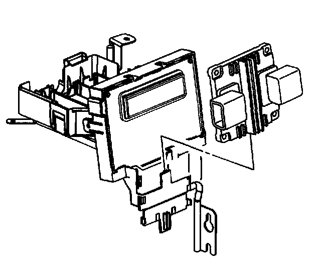 1. Use the retaining tab to secure the TCM when installing the TCM to the underhood junction block bracket.