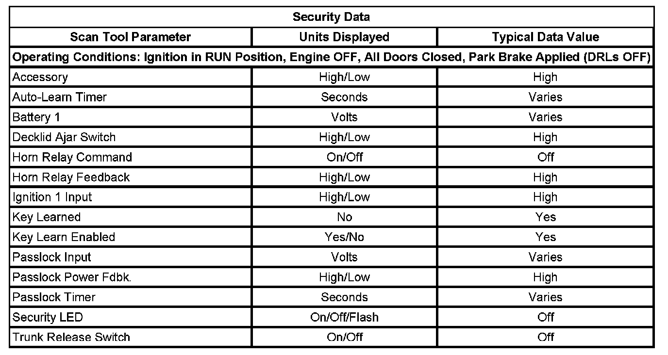 Scan Tool Data List - Security Data