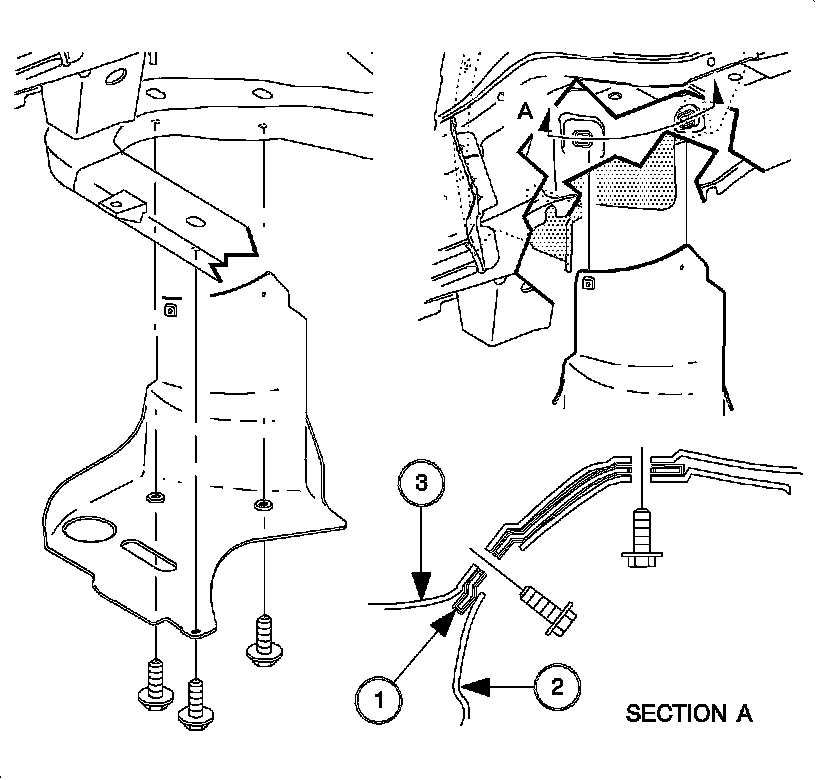 Tighten the splash shield to body bolts to 5 Nm (445 lb in).