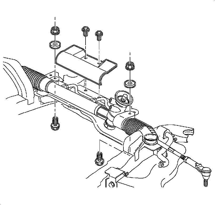 12. If equipped with a L61 engine, install the steering gear heat shield. Refer to Power Steering Gear Heat Shield Replacement in Power Steering System.
