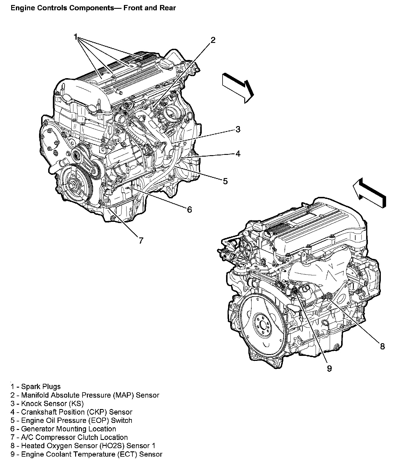 Engine Controls Components - Front And Rear: