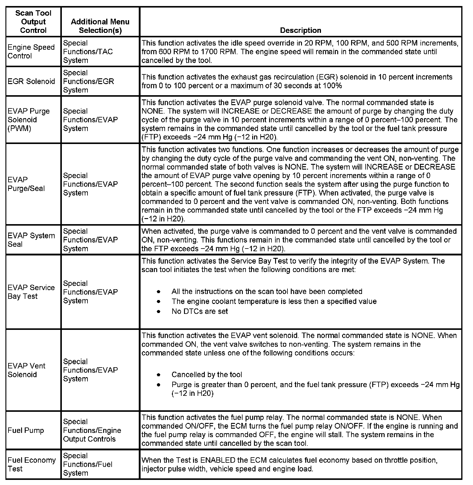 Scan Tool Output Controls