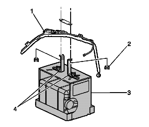 15. Connect the inflator module (1) to the adapter (2) on the SIR deployment harness (3).