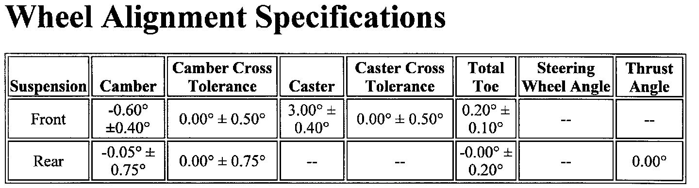 Wheel Alignment Specifications