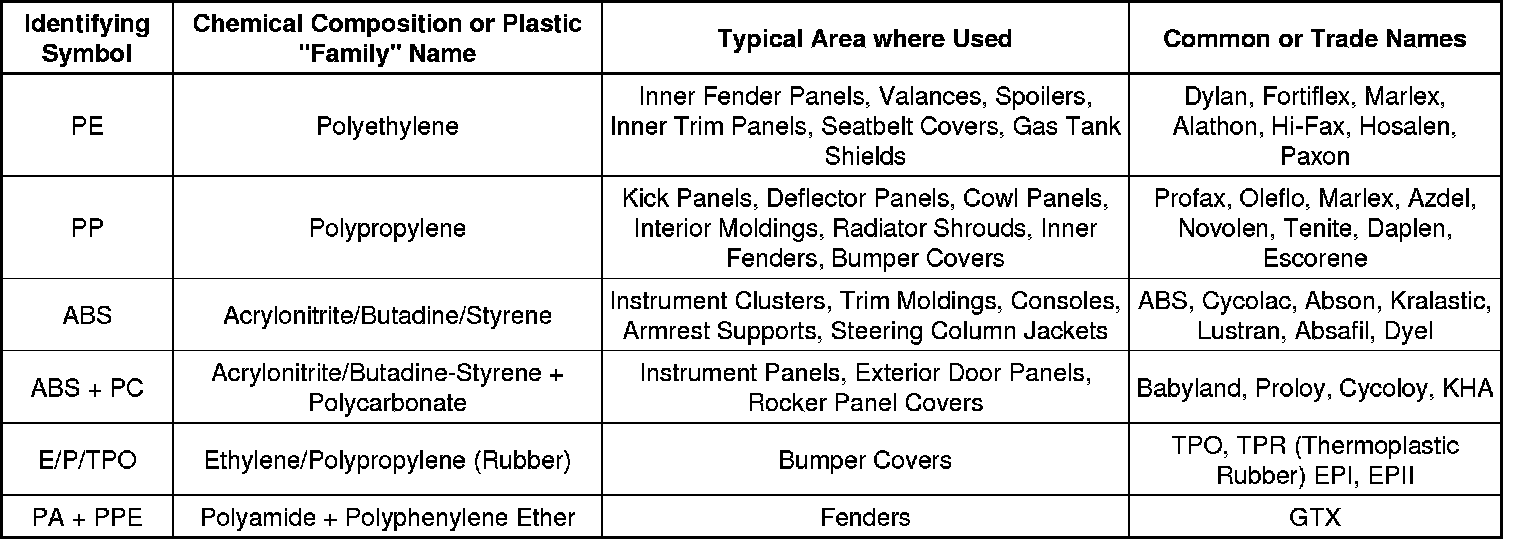 Different materials require different procedures for preparing and refinishing. Before beginning any repair, identify the type of material involved.