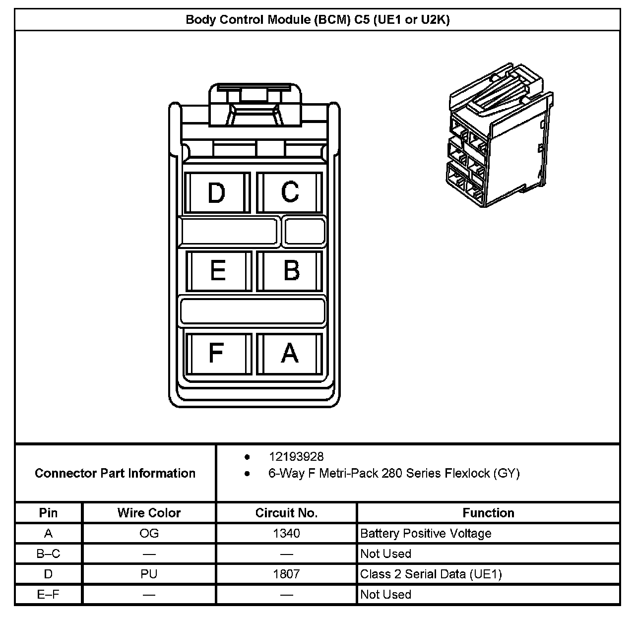 Body Control Module (BCM) C5 (With RPO Code UE1 Or U2K):