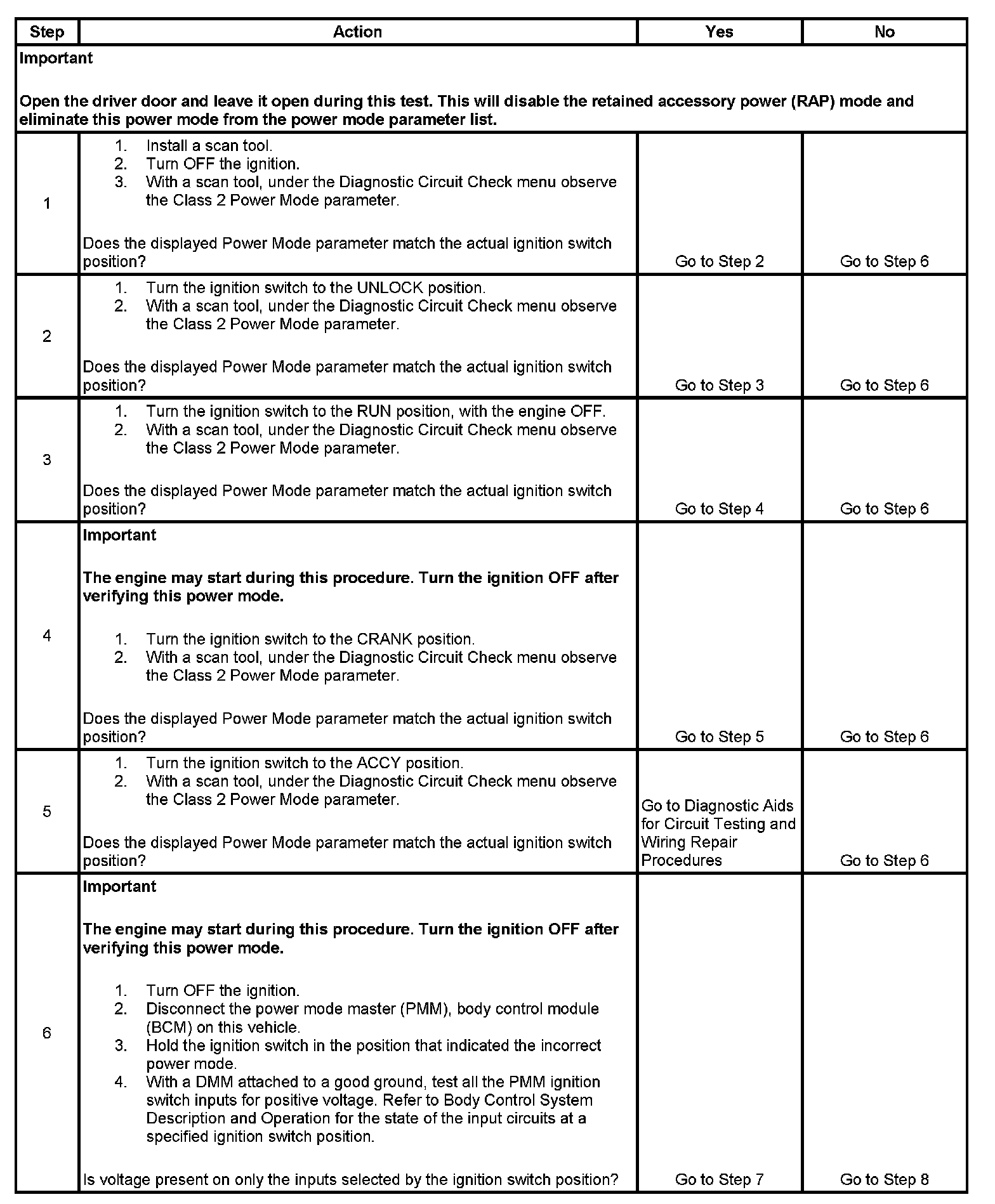 Home >> Saturn >> 2005 >> ION L4-2.2L VIN F >> Repair and Diagnosis >> Powertrain Management >> Computers and Control Systems >> Body Control Module >> Testing and Inspection >> Symptom Related Diagnostic Procedures >> Power Mode Mismatch