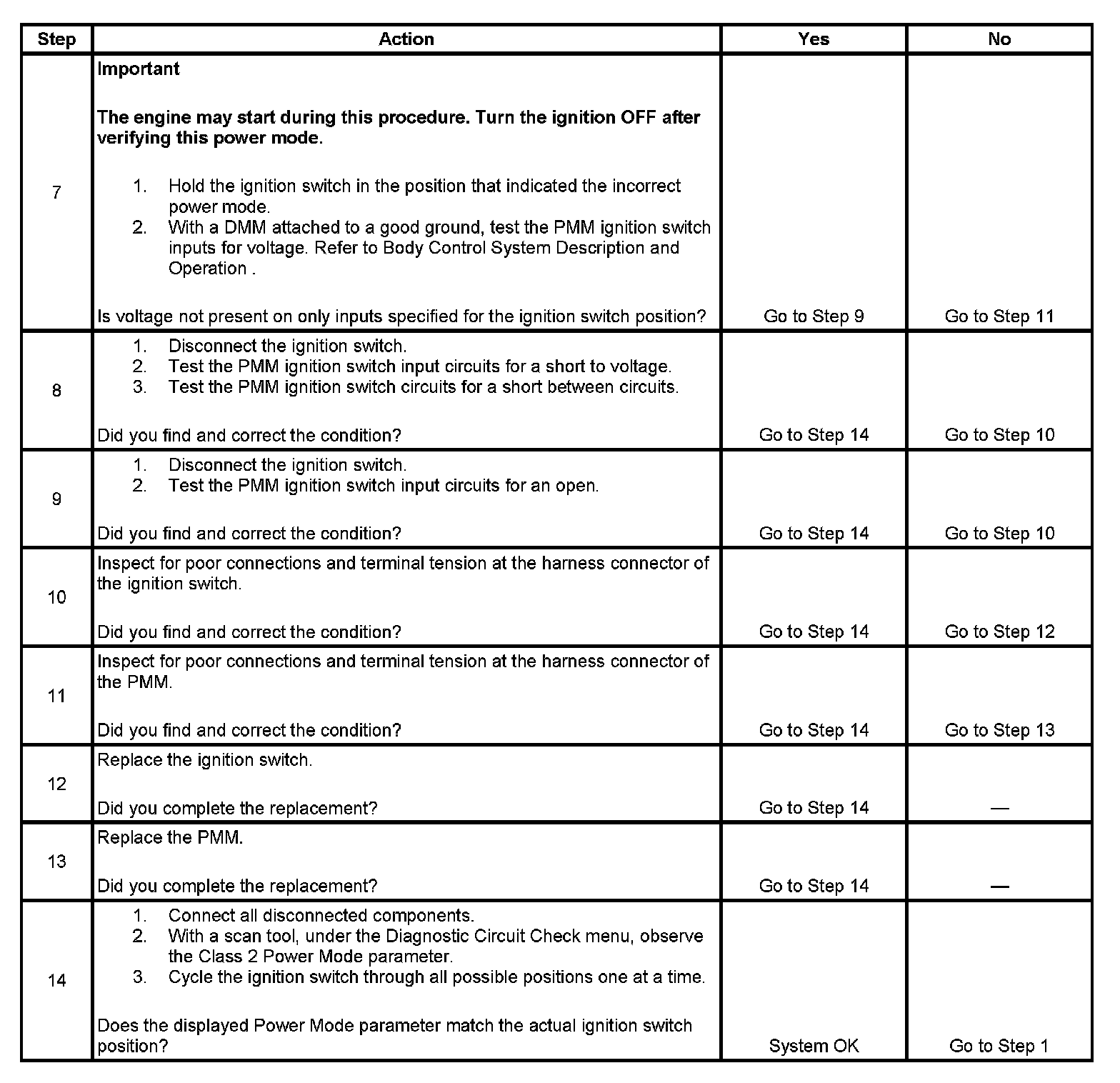 8. If any ignition switch parameters that should be inactive in the present ignition switch position are active, 2 ignition switch signal circuits may be shorted together.