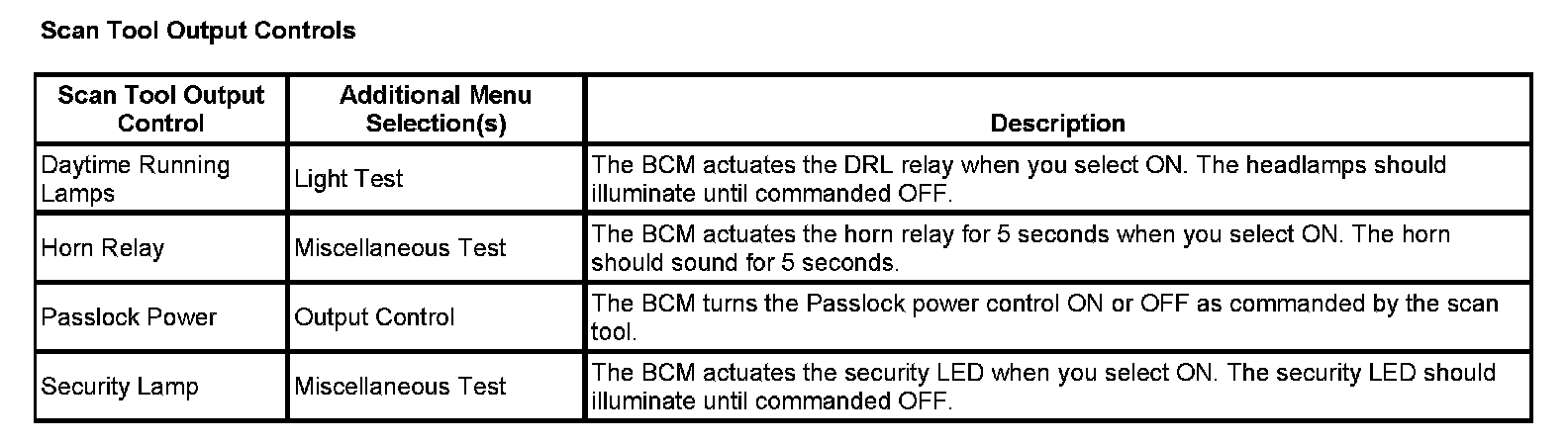 Scan Tool Output Controls: