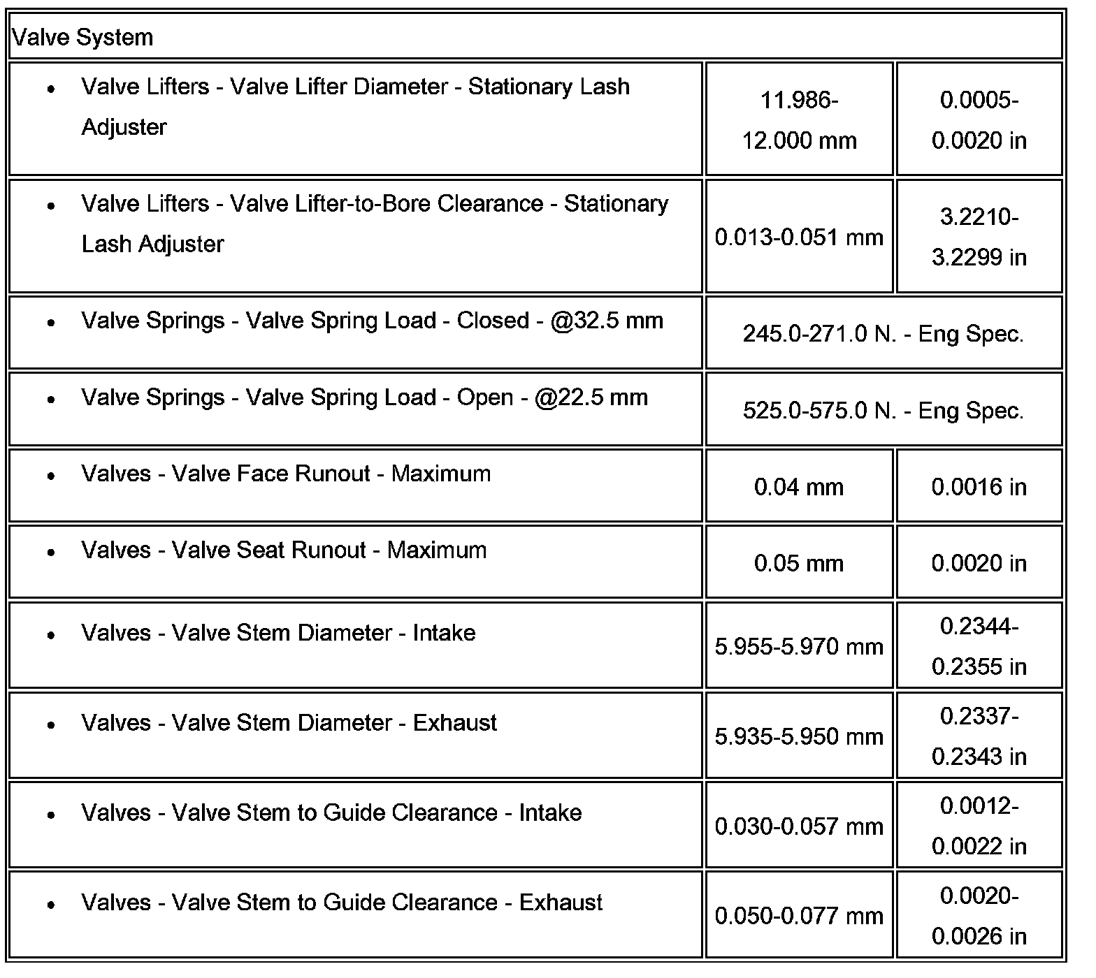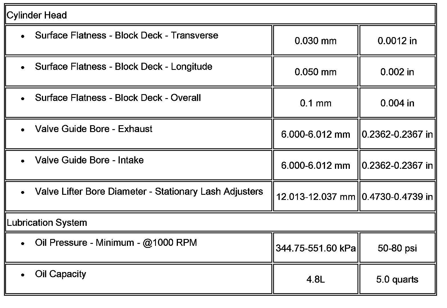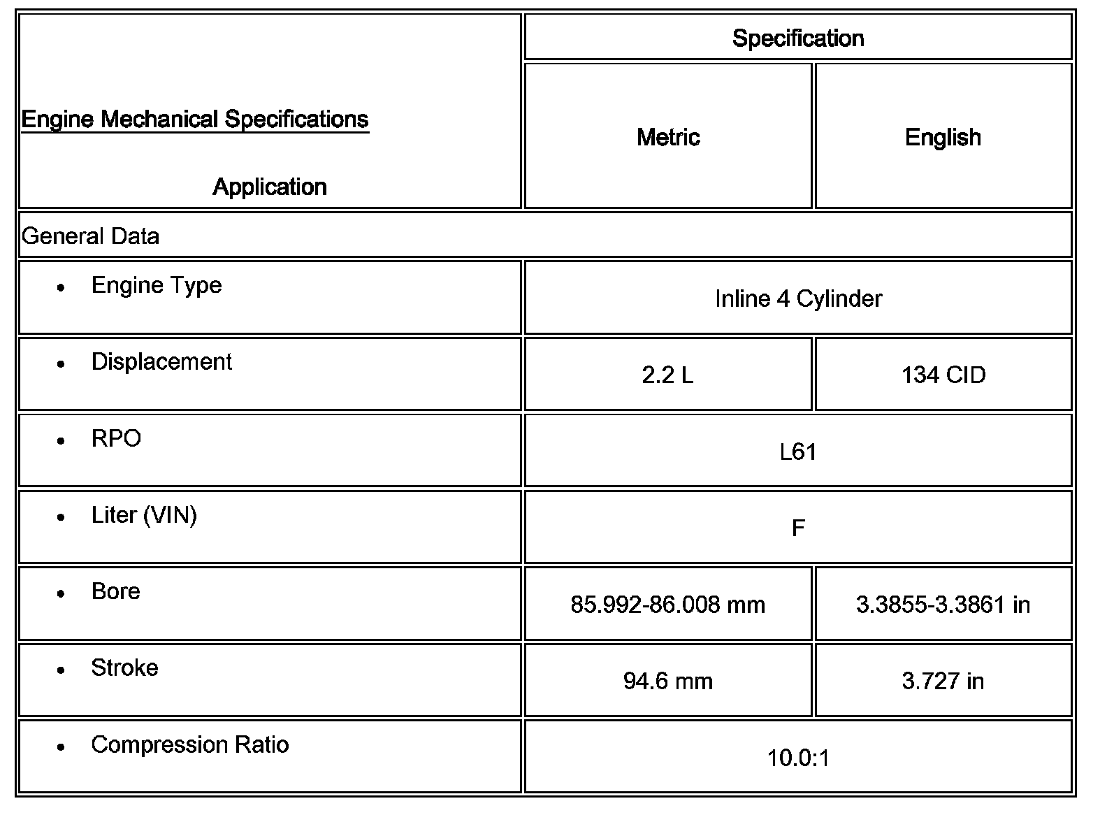 Engine Mechanical Specifications: