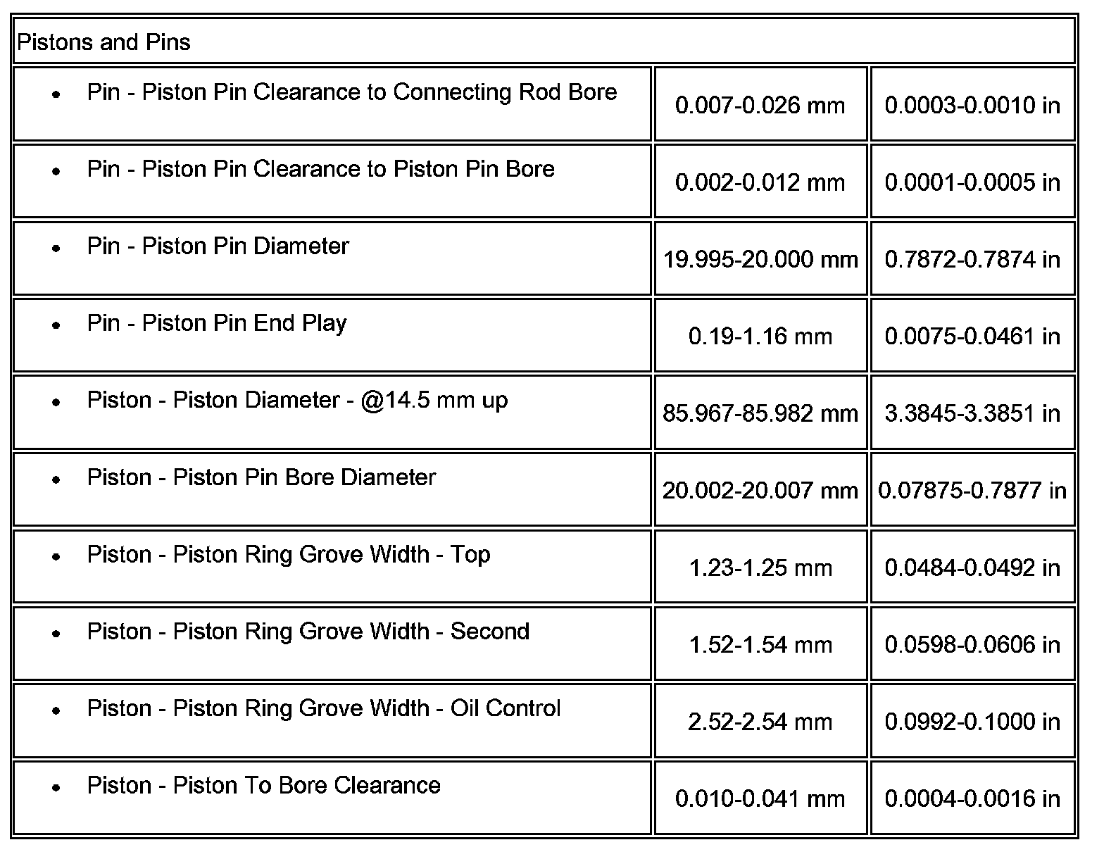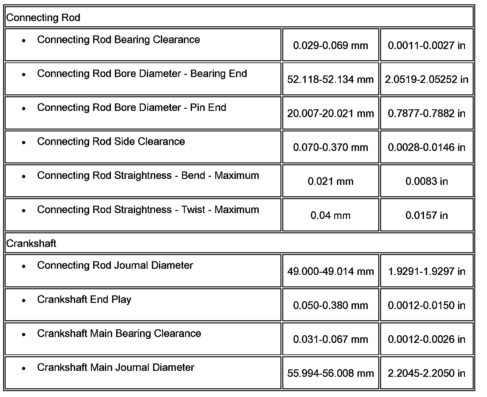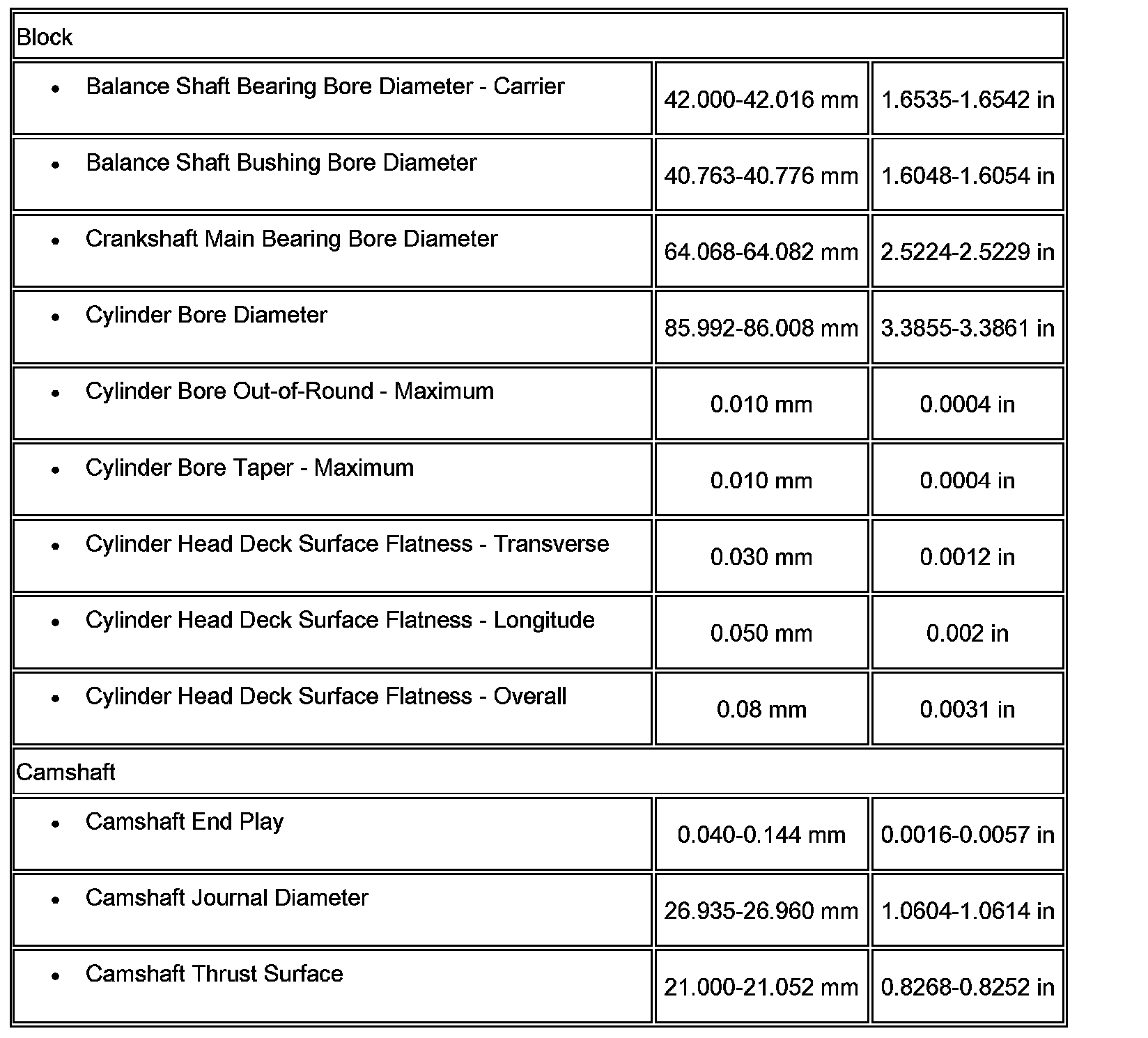Engine Mechanical Specifications